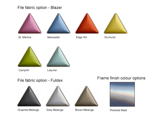 Los acabados van desde colores vibrantes a los matices más sutiles. El armazón de acero pulido ofrece una estructura sólida, mientras que los triángulos tapizados en fieltro agregan un elemento táctil a la estructura. Los módulos triangulares livianos también aportan una sensación de diseño exclusiva en una variedad de combinaciones y patrones, un mosaico geométrico que es tan estéticamente agradable como funcional.