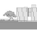 Las fachadas protegidas por una celosía de elementos metálicos que se rota según las necesidades bioclimáticas de cada espacio se constituye en un elemento de transición entre el interior y el exterior e indefine la volumetría. Estos elementos contrastan con la contundencia del concreto a la vista que se fundió con formaleta de madera de amarillo y que define las tonalidades del edificio en relación con su entorno geográfico junto con los colores institucionales