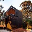 El terreno con el que nos encontramos fue extremadamente desafiante en el que el 90% estaba cubierto con árboles adultos de Pohutukawa, este lote es parte de una franja contínua de bosque que bordea la carretera a lo largo del frente costero. Las circunstancias no permitían mucho, pero dictaban una respuesta poética sensible a un edificio que, buscando existir, requeriría la destrucción de un gran número de árboles adultos. Para hacer esto miramos a los mismos árboles para darnos las pistas que necesitábamos. (guardar)