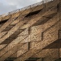 A través de la disposición de paneles metálicos que varían en los distintos niveles y ángulos, la fachada se percibe como el juego de una gran variedad de geometrías que brillan con la luz del día, haciendo eco no sólo de los colores y tonos, sino también del movimiento de los vientos y las olas.