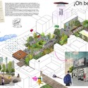 Crítica del jurado: La propuesta parte de la premisa de entender el sector como un apéndice del futuro parque lineal y que por su ubicación y contexto se presenta como un espacio que debe responder a la relación BARRIO-URBE. Define al pabellón de baños como una pieza arquitectónica repetible y elevada del nivel cero con el fin de potenciar la continuidad del parque hacia los bordes del sitio y generando espacios de descanso y recreación semicubiertos en su recorrido. Sobre el mismo se plantean actividades comerciales, guardados y de intercambio diferenciando las acciones que se suceden debajo y sobre el pabellón. Es destacable la resolución proyectual y materialización de la pieza-módulo de baños elevados. Se considera pertinente la coherencia entre el discurso y la propuesta, destacándose en la gráfica la construcción de un modelo del módulo de baños. Como cuestión objetable del trabajo este jurado entiende que la escala de la intervención respecto al pabellón de baños se encuentra excedida, como así también su altura en referencia a los edificios patrimoniales que lo circundan.