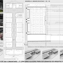 Interesantísima propuesta estructural, tanto para el perímetro del edificio como para la resolución de la estructura de la cubierta liviana de sombra del sector exterior de acceso público. Igualmente la organización espacial y programática del edificio aunque inicialmente este planteada requiere mayor desarrollo de resolución.