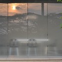 Al concebirse como una caja a una sola planta, perforada por cinco patios y con multiples perspectivas visuales que la atraviesan transversalmente, la experiencia del espacio interior siempre está en relación con los patios circundantes; su profundidad matizada por los reflejos sobre el cristal se convierte en un divertido juego de falsos laberintos. Al exterior, una caja neutra se transforma hasta inmaterializarce como contenedor de niebla.