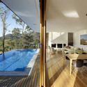 Descripción enviada por el equipo del proyecto. Una pequeña casa con vistas a un pintoresco valle en la región Hawksbury en las afueras de Sydney, ha sido diseñada como un refugio alejado del centro de la ciudad. La casa se configura a partir de dos pabellones que están situados a lo largo de las curvas de nivel, con todos los espacios orientados específicamente al paisaje. Responde a la naturaleza australiana, con materiales predominantemente naturales y locales.