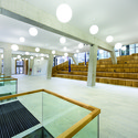 El interior es compacto pero reconocible al instante - con el objetivo de crear un entorno académico aún no formal. El amplio hall de entrada se ha resuelto con grandes pasos para crear un fondo adecuado para la interacción de los estudiantes entre las clases. La circulación interior se ha organizado en torno al patio.