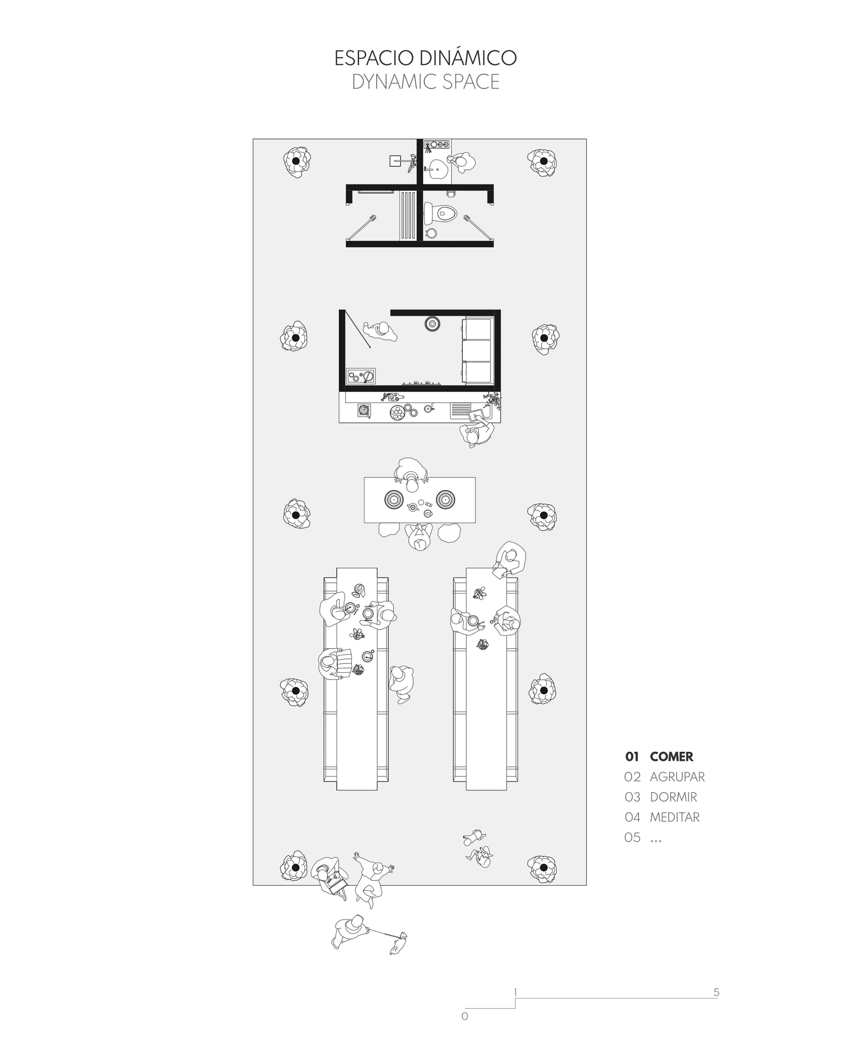 El proyecto se establece como un punto de encuentro dinámico pensado en adaptarse a varios usos. El espacio invita al turista transitorio a ocupar el lugar de manera libre, capaz de albergar actividades como, reuniones, comedor, área de acampada o hasta un centro de retiros espirituales.
