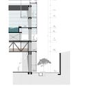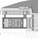 Las condiciones del lugar, un tanto difíciles por tratarse de una zona de reserva forestal, con una normativa fuerte al respecto de la ocupación, sugería un edificio compacto, ya que en términos prácticos no cabria en el lote si no fuera a través de la estrategia de ubicar unas actividades sobre las otras, esta circunstancia nos llevo a plantear un edificio descompuesto en piezas que se agrupan dejando grietas tanto en la horizontal como en la vertical, grietas que se constituyen en fachadas que se miran unas a las otras y permiten transparencias donde el entorno penetra en el edificio volviendo difusos sus limites, grietas que se convierten en recorridos a distintos niveles y unidas por puentes, comunican las piezas entre si.