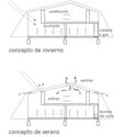 A lo largo del caballete se reduce la distancia entre los dos layers Soft Skin y Milky Shell a aprox. 45cm. Por este espacio intermedio circula aire, que extrae el aire caliente que se junta debajo del caballete por las dos ventanas del interior de la casa.
