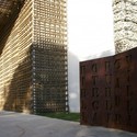 Materiales Cada uno de los volúmenes está construido de diferente manera y con materiales distintos, uno en bloques de piedra (tomados de una rivera vecina) y el otro de madera de pino (tomada de un bosque ecológicamente plantado). En su interior, cinco cajas metálicas entramadas entre sí agrupan el programa creando un conjunto permeable, permitiendo el paso del aire, en el cual se puede apreciar tanto la piedra como la madera.