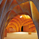 La cúpula interior consta de 66 costillas estructurales de madera semi-circulares verticales y horizontales, formadas por 650 piezas individuales. Las costillas de madera están encastradas mutuamente y aseguradas en las ranuras cortadas en los paneles, de manera que la estructura no sólo tiene rigidez sino que también es autoportante.