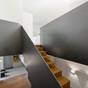 Los tres volúmenes están unidos con un eje de transición central. Moviéndose a lo largo de ella se pueden sentir los cambios leves en los espacios (donde los acabados del piso que siguen la dirección del eje a lo largo de la casa mejoran aún más la sensación) y se traduce en el escenario interno de la casa - una pulsación suave de los espacios, la luz y la orientación, la atención a la naturaleza que lo rodea, la disposición del estilo de vida. A medida que los clientes tienen un buen ojo para el arte, no aparecerán lugares para incorporarlo en el interior sin que interrumpa el flujo tranquilo de los espacios y tenga que competir con el atributo interior principal - la naturaleza circundante.