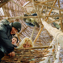 Nacido en 1957 en Moscú, el artista Nikolay Polissky diseña y construye imponentes estructuras artesanales en medio de los vastos paisajes de su país. Sus obras se ubican en su mayoría en la localidad de Nikola Lenivets, a 200 km de la capital rusa, y son levantadas en su totalidad por pobladores de la zona. Para la construcción utiliza materiales locales y en desuso, principalmente ramas, troncos y tablas de madera, tomando como punto de partida sus técnicas constructivas tradicionales.
