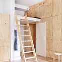 Este proyecto, desarrollado por la arquitecta chilena Claudia Ponce, debía intervenir el primer piso (originalmente concebido como Reserva de Biblioteca) para ser utilizado como Sala de Estudio para los alumnos. La solución que desarrolló para este desafío logró integrar todos los requerimientos mediante un solo gesto: una lucarna que conecta el primer y segundo piso, traspasando el techo de la terraza e integrando todo como una sola pieza. “La madera permite dialogar con toda la materialidad existente como hormigones vistos, aluminio, cristales, los nuevos pavimentos y pinturas, ya que posee la cualidad de ser un material neutro y versátil, no teniendo así que incurrir en costos adicionales”, señala la arquitecta
