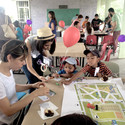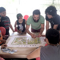 Después de la primera semana-etapa de diseño, los alumnos pasaron la siguiente colaborando con los vecinos y voluntarios para auto-construir el proyecto de “40 módulos de andamios, varias decenas de palets, retales de malla sombra y unos galones de pintura”. Además, con el apoyo de la ciudad, la bomba pudo ser reparada y llenarse de agua, permitiendo al proyecto nacer.