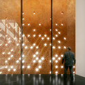 Una doble fachada, cambiante, que se cierra incitando a la introspección y que presenta una imagen gráfica que narra la historia del conflicto como un compromiso crítico con el pasado y se abre, dejando pasar la luz, como una lámpara potente, que muestra su interior, muy transparente, una señal esperanzadora, que desde su interior deja entre ver la ciudad.
