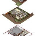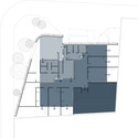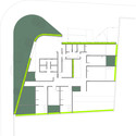 Ligeramente elevado del suelo, aprovecha el retranqueo impuesto por la legislación urbanística para ofrecer un espácio de transición entre lo colectivo y lo individual, aprovechándose de la condición de esquina de la parcela original de 750m2. La fachada de hormigón, con la sutil marca del encofrado, se organiza como piel mediadora, enmarcando el gran panel de azulejos, asi como el extenso jardín vertical. Esa extensa pared verde perfila la esquina, donde se curva y para extenderse hasta el lado opuesto del terreno. El área total construida, de 1.200m2, se organiza entre la planta baja, un volumen superior, y una planta semienterrada que se aprovecha para ubicar el garaje y los espacios de servicio.