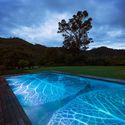 El cliente es un buen amigo mío y su encargo fue el más extraño, divertido y satisfactorio que he tenido. La pieza diseñada para esta alberca constituye una contraposición de hojas de mármol y ónix, inspiradas en la vegetación local. Ni el fabricante del mármol ni yo sabíamos cómo iba a funcionar este material, así que fue una aventura. El resultado es una serie de lecturas múltiples y confusiones: no sabes si una hoja es el espejo de la otra, y con las distorsiones provocadas por el movimiento del agua y los cambios de luz, la alberca resulta totalmente diferente por el día y que por la noche. Cada vez que la miras, es una nueva alberca.