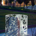 SIGNOS DE ORIGEN / 2004. Tres fachadas de cristal templado, intervenidas con serigrafía. En colaboración con Uzyel Karp. Centro de Diseño, cine y televisión, CENTRO.