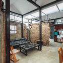 El techo fue entonces completamente eliminado y reemplazado con vidrio transparente, lo que permitió luz natural y un volumen adicional. Tejas individuales se utilizaron para construir nuevos muros para una mirada original que conserva el aura cálida de los viejos edificios tradicionales.