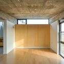 Al recorrer el espacio interior de la vivienda, se comprende que la secuencia espacial está ordenada por la estructura. Estructura es forma, espacio y movimiento. En un intento de reducir, pero sobre todo por controlar los costos, se trabajó con elementos modulares económicos -bloque de hormigón- y por otro con materiales que no requieran de un posterior trabajo de acabado o manutención –hormigón armado visto y chapa sinusoidal prepintada-. Las envolventes exteriores se componen, entonces, de un panel mixto compuesto por bloques de hormigón y perfilería metálica con placa de yeso interior, el cual posibilita realizar las instalaciones sin dañar la obra húmeda a la vez que confiere una optima aislación térmica al panel.