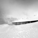 El restaurante de montaña está construido para recibirte cuando salgas del teleférico, es la primera etapa de un proyecto de reurbanización y restauración de toda la cima de la montaña a su estado natural. Involucra colocar un camino de pedregales, ya sea surco o borde, que marca un límite con forma de lazo entre el lado interior congestionado de la cresta (torres de alta tensión, estaciones de montaña, cabañas de patrulla de esquí) y de las pistas mejor protegidas. Su diseño tiene un enfoque de borde que rodea y es una ilusión al mundo imaginativo de la fortaleza o túmulo.