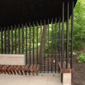 Ubicado en un jardín sensorial que contienen plantas con texturas interesantes, hierbas aromáticas y aves, el equipo de diseño tuvo la tarea de sustituir una antigua glorieta abandonada. En su reemplazo, construyeron un pabellón al aire libre que se suma a la estimulación sensorial proporcionada por el parque. El olor de los materiales de construcción, la madera y la tierra apisonada, se unen a una interesante mezcla de sombras creadas por la forma del pabellón.