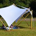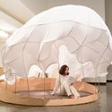 Este pabellón se crea a partir de varillas de fibra de vidrio y una membrana elástica y ofrece un espacio interior íntimo que sirve como refugio temporal. La estructura emplea la física basada en la tensión detrás de las estructuras de tracción, pero las formas onduladas de la estructura son el resultado de geometría tipo origami controlada en la flexión y la configuración de las varillas.