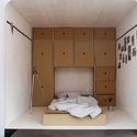 En un esfuerzo de colaboración de los 3 meses de toda una clase, los estudiantes tuvieron que pensar "fuera de la caja" con el fin de crear una "caja", capaz de aumentar al menos un 50 por ciento. Mediante el uso de guías telescópicas, el volumen inicial de la caja se abre en dos y sale un arco triple que conecta los dos volúmenes. El espacio interior contiene mobiliario de cartón corrugado.