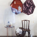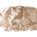 Esta lámpara de techo muestra el uso de la madera en una forma no convencional. La cuadrícula de triángulos hace que una pantalla flexible pueda ser transformada manualmente en formas tridimensionales. Aunque genera luz en la oscuridad, la superficie exterior se hace más evidente con la luz del día, convirtiéndose en un objeto escultórico.