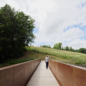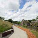 El proyecto lleva a una verdadera secuencia desde el estacionamiento hasta las ruinas. El nuevo camino pasa por el molino (recepción, espacios escenográficos y sala de modelos), llega a la colina a través de la nueva pasarela, continúa por el jardín, cruza el segundo puente sobre la carretera nacional y, finalmente, va hacia abajo de las ruinas.