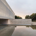 El proyecto se plasma a lo largo de un eje en forma de un volumen metálico blanco flotando suavemente sobre una base de hormigón. La transparencia del volumen crea una relación especial con su entorno.