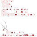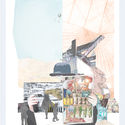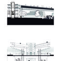 Extracto de memoria: El imaginario urbano de la Vega ha sido capaz de albergar un comportamiento colectivo asociado a una forma de liberación sociocultural. La superación de la vulnerabilidad social a través de un contexto urbano-comercial, enfatizándose la valoración de los trayectos cotidianos, en donde la Vega se presenta como un núcleo articulador dentro de un contexto microsocial [sic], en el que se superponen infinidades de flujos cotidianos y eventuales, que relacionan a los diversos actores que participan de esta simbiosis sociocultural (mayorista, feriante, ambulantes, caseros). Los cuales están inmersos en un hábitat en donde la aceleración de los tiempos ha determinado una cierta polaridad temporal en torno a lo que La Vega representa, condicionándose de este modo que la trascendencia d elo residencial hacia lo colectivo esté determinada por los tiempos que La Vega impone en el lugar. En virtud de otorgar una nueva condición temporal, tanto paralela como alternativa a lo que la Vega es hoy en día, se plantea el desarrollo de una Mediateca, la cual se sitúa en el mercado Tirso Molina, estableciendo un nuevo eje temporal, vinculando a La Vega a través de la canalización de ejes peatonales que rompen los límites preconcebidos.