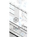 Extracto de memoria: Se trata de transformar y reemplazar el cierre del Mercado Central por una banda de unidades habitacionales configuradas por núcleos húmedos (baño y cocina) que sirvan a un espacio interior que se define como público o privado en la medida que el usuario controla la apertura o cierre de la unidad. El proyecto propone una tipología residencial que no se desvincula de la calle, sino que puede sumarse a la trama urbana permitiendo acceder al Mercado a través de sus espacios colectivos. De manera inversa al modelo de ciudad en el que la calle define el límite de los predios privados, es la vivienda la que ahora delimita el espaico público. La banda construye cuatro nuevas fachadas del Mercado hacia la ciudad, al tiempo que crea una fachada hacia el interior, integrándolo a la trama urbana que lo rodea.