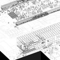 Extracto de memoria: La Vega, históricamente conocida como la Chimba, se reconocía como un lugar rural, de cultivos y producción agrícola. Hoy la reconocemos como un lugar de intercambio y distribución, como un vacío que da lugar a múltiples recorridos y encuentros. Un lugar con diversos usuarios, vendedores, acarreadores, compradores, inmigrantes y turistas que pasean libremente entre las múltiples actividades comerciales y domésticos del entorno. Todo esto contenido por una estructura precaria, informal y aparentemente transitoria que ha borrado todo pasado productivo del lugar. Planteamos explotar la Vega, liberar ese vacío para convertirlo en un nuevo espacio público, un huerto urbano que cualifique el lugar. Rodeado y contenido por una nueva Vega vertical multiprogramática que combine en sus estratos el comercio, la vivienda y el autocultivo.