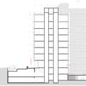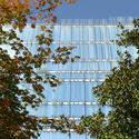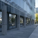 La envolvente está compuesta por una triple capa de vidrio (cámara caliente) a la que se agrega una cuarta capa -con una cámara ventilada- que contiene el paquete de persianas microperforadas para regular la luz. Las pantallas Brise-soleil de cristal serigrafiado están ancladas en el exterior, dando a la superficie exterior de la fachada un patrón modular variable en cuanto a las dimensiones del panel y el diseño en su superficie.