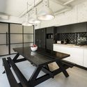 Descripción enviada por el equipo del proyecto. En lo que antiguamente era una fábrica de lencería, situada en un entorno barrial de casas bajas de la ciudad de Buenos Aires, la agencia de publicidad La Comunidad nos encargó el diseño de sus oficinas.