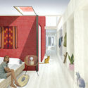El corredor es uno de esos espacios que nutren el interior y el exterior de manera muy eficiente y binominal. Adoptamos esta idea, porque este proyecto es una vivienda que tiene partes dentro de otra, y como tal, busca que los espacios entre estas piezas sean los que se transformen en corredores, galerías, terrazas protegidas, entre otras posibilidades.