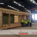 En segundo lugar, por su método constructivo seriado y cortado en CNC, lo que permite trabajar con materiales de madera terciada con una huella de carbono muy baja. Esto permite aminorar las horas de construcción por ensambles que no necesitan fijaciones de materiales con alta emisividad de carbono, logrando eliminar obras húmedas, desechos, entre otras cosas.