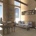 El principal problema de la vivienda social son los pocos metros cuadrados con los que cuenta. Se propone la modificación de espacios mediante mobiliarios y tabiques corredizos otorgando cierta libertad al usuario al adaptar la vivienda a sus necesidades y cambios, permitiendo transformar dormitorios en áreas de trabajo, lecturas u otros, aplicándose también al living/comedor en donde la terraza actúa como extensión y relacionador con el paisaje. A su vez, la vivienda posee un altillo que puede modificarse a las exigencias requeridas, y una doble altura en el área pública que permite la opción de ampliación si así la familia lo requiriese. De esta forma se lleva el concepto de sustentabilidad no solo a lo que hacemos con los recursos sino que también a un habitar sustentable.