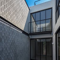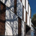 La utilización de celosía como muro de colindancia, permite aprovechar para el edificio y sus vecinos, las oportunidades de ventilación cruzada y de luz natural que generan los vacíos en ambos lados del muro.