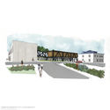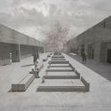 E- El vacío central creado se transforma en una plaza abierta a la comunidad, invitándola a integrarse al nuevo campus, ofreciéndose como un lugar para el desarrollo comunitario y cultural de la sociedad.