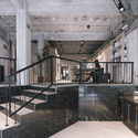 La intervención sobre los materiales existentes se centra en recuperar sus cualidades más "brutas". Las baldosas de terrazo se adiamantan. Los falsos techos se desmontan y aparecen el esqueleto de hormigón del edificio y las huellas de su pasado. Las superficies se desnudan desvelando sus pliegues, sus accidentes superpuestos, dejando entrever un tiempo excavado.