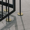 La carpintería se pliega para alejarse de la calle y acoger al cliente en un espacio "doméstico". Su materialidad delicada se distancia del espacio desnudo que la rodea y del movimiento de la calle. El mármol que define el zócalo del escaparate interior asoma al exterior para invitar a la entrada.