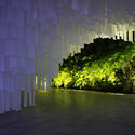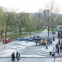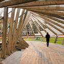 Colocado en el centro de Helsinki, este escenario de verano de madera es un espacio astuto. Las formas triangulares perforan un cascarón de madera que envuelve el sitio. La estructura está orientada a un ángulo distinto a la retículo urbana, dándole una presencia singular. Bancas de madera y luces permiten que la estructura entretenga a unas cuantas docenas de personas al mismo tiempo.