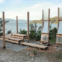 Ubicado en Puerto Cisnes en la región sur de Chile, la estructura funciona como un mirador abierto a cuatro horizontes que presenta distintas escalas visuales, situando al espectador en medio del paisaje.