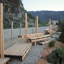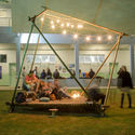 Este "laavu" o refugio fue construido en nueve días por doce estudiantes en el bosque Punkaharju de Finlandia del Este. La estructura de madera se balancea sobre una base de piedra, permitiendo la inclusión de una fogata hundida y un área de reunión, e incluye un techo en pendiente para alejar los elementos.