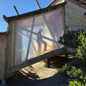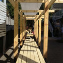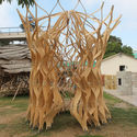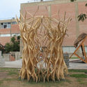 Esta fascinante estructura de sombre está hecha casi enteramente de subproductos de la agricultura. Los páneles del refugio fueron hechos de fibra de cáscara de coco y aglutinante de soya, unidos para crear un quiosco. Ya que no se contó con herramientas eléctricas durante el proceso de construcción, los elementos del diseño fueron prefabricados lo más posible, con estudiantes metiendo cuantos páneles cupieran en sus equipajes para terminar el proyecto en el Festival Chale Wote en Ghana.
