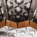 Una compilación de octaedros hechos de láminas de aluminio de 1.5 milímetros crean una interesante estructura. Este diseño generado en Rhino y Grasshopper fue grabada, cortada por plasma y armada para crear una instalación altamente reflexiva.