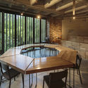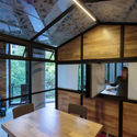 Extracto de descripción: La arquitectura de la oficina es el resultado de la organización del programa con una lógica de privacidad vs socialización, de modo que  la sala de reuniones, la oficina administrativa, la sala de innovación y el taller de fabricación están contenidos en pabellones, mientras que la sala coworking, la sala espera, las estaciones de trabajo y los comedores son programas abiertos que están en medio de los espacio cerrados.