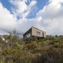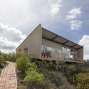 Extracto de descripción: La Carbonera es una vivienda ubicada frente al embalse de Tominé en un terreno pendiente y rocoso  que hospeda un manto vegetal de especies de bosque alto andino, usualmente frágiles, arbustivas y de crecimiento lento. Su estrategia proyectual es la implantación con el menor impacto en el suelo, la búsqueda de una altura que permita la relación visual con el Embalse sobre la copa de los arbustos y el uso de un modelo constructivo eficiente en tiempos y costos.